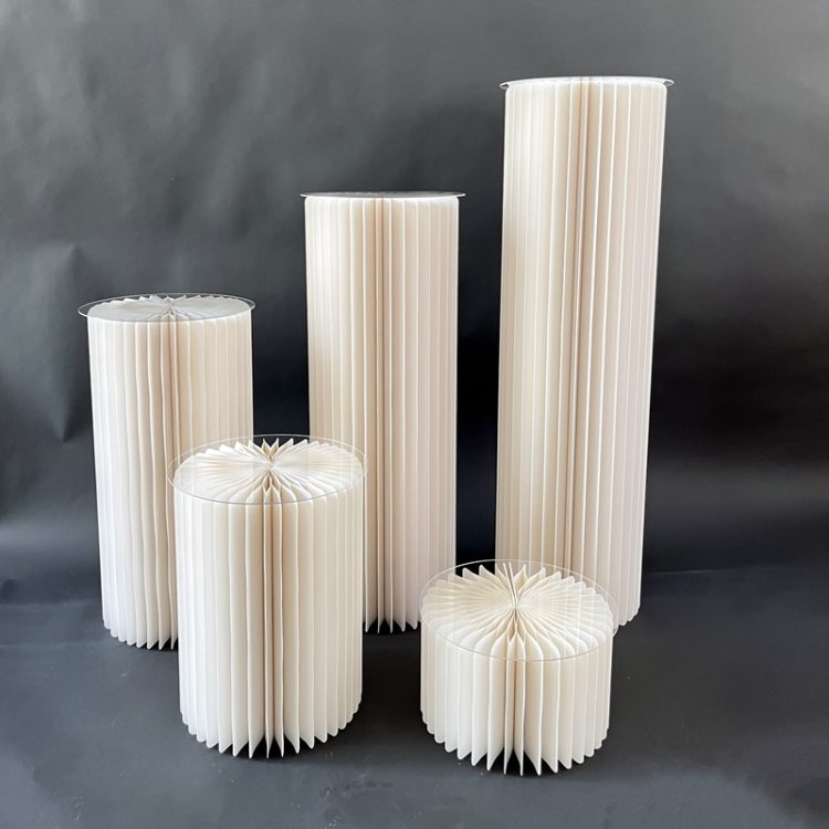 - Mesa redonda de Origami para postres, columna romana plegable para decoración de bodas y banquetes.