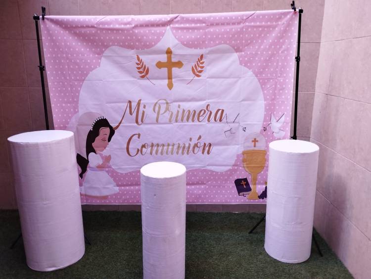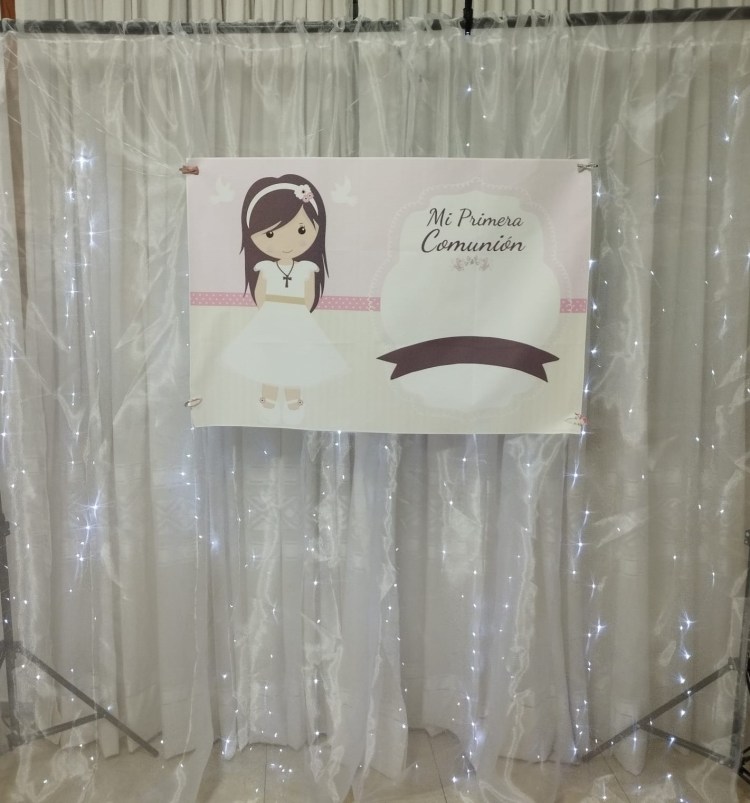 Detalles: alquiler de soporte para fondo decorativos. Este soporte es ajustable. Tiene un tamaño de 2 metros por 2 metros (Este tamaño es tanto de ancho como de alto), se puede ajustar. Alquiler 40 euros.