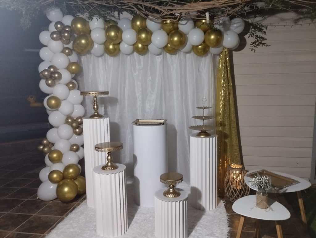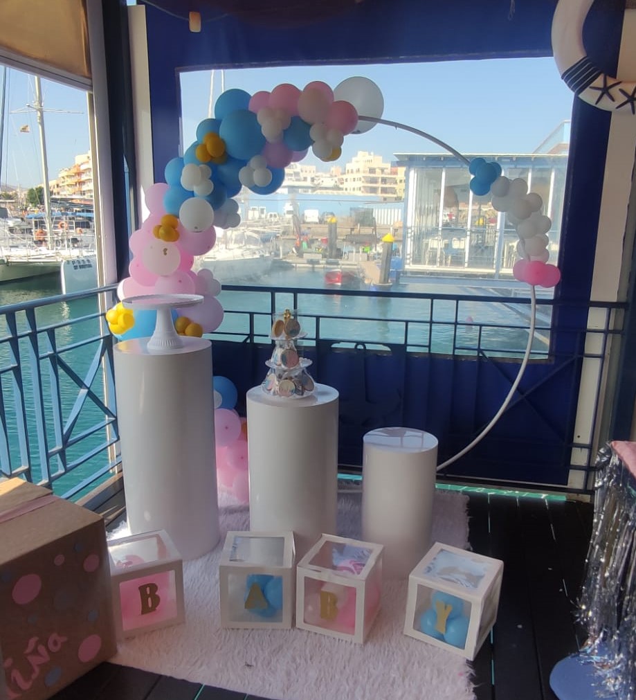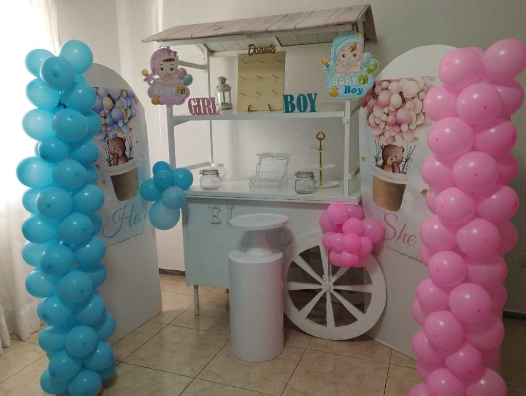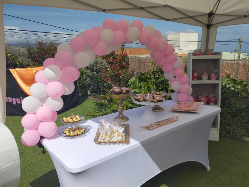 Detalles: alquiler de arco decorativo para globos, tamaño 2 metros. Incluye la mesa para montarlo. Costo de alquiler 40 euros.