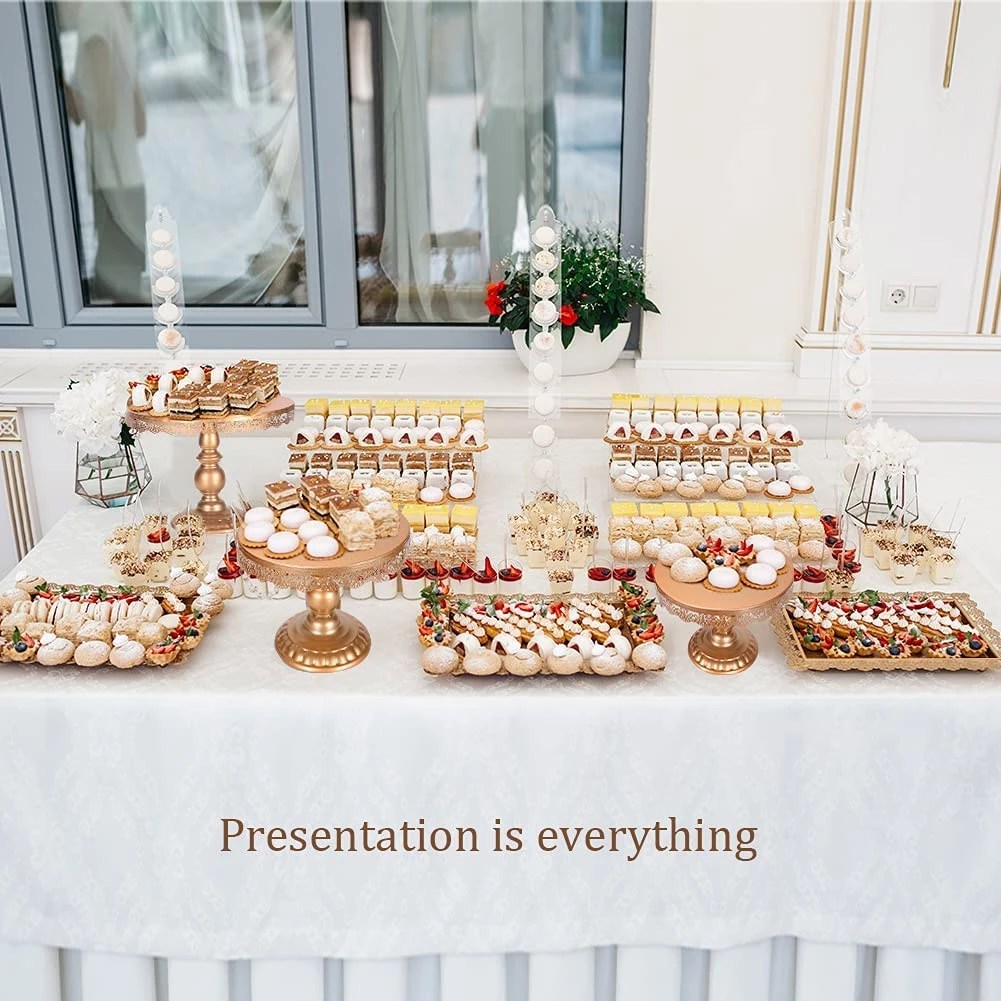 Detalles: Juego de 6 bandejas para pasteles de piezas, expositor de postres, Pedestal estándar para cupcakes, fiesta de boda, soporte cuadrado para dulces. Alquiler 40 euros.